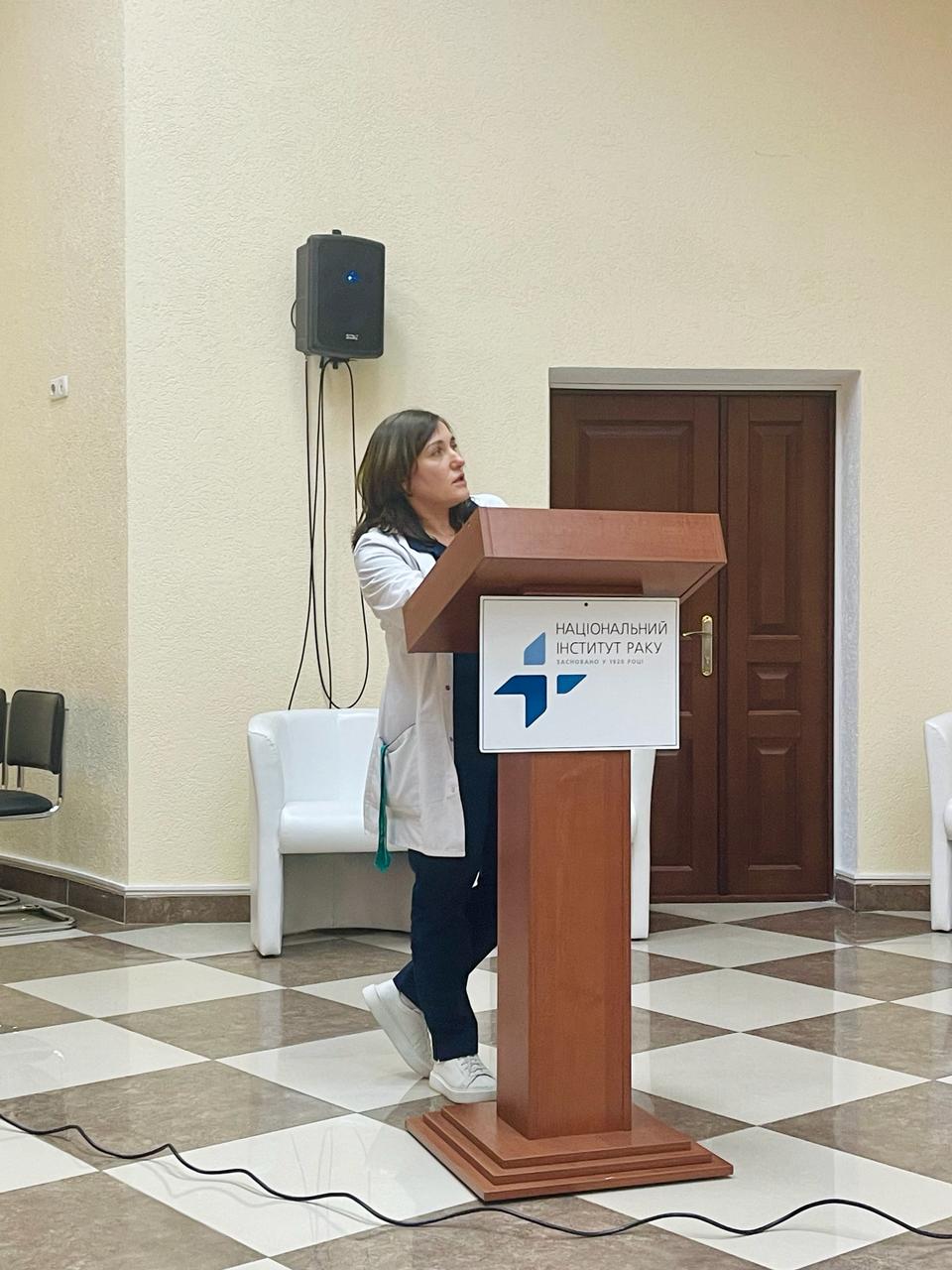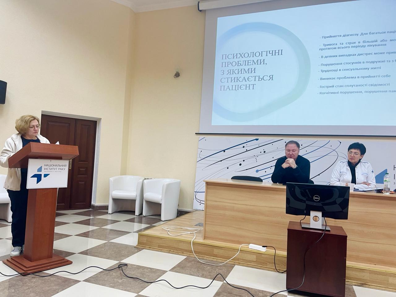 Олена Каширіна – практичний психолог відділення фізичної та реабілітаційної медицини, зупинилася на основних аспектах психологічного супроводу онкологічних пацієнтів, психологічних проблемах, з якими стикається пацієнт.
