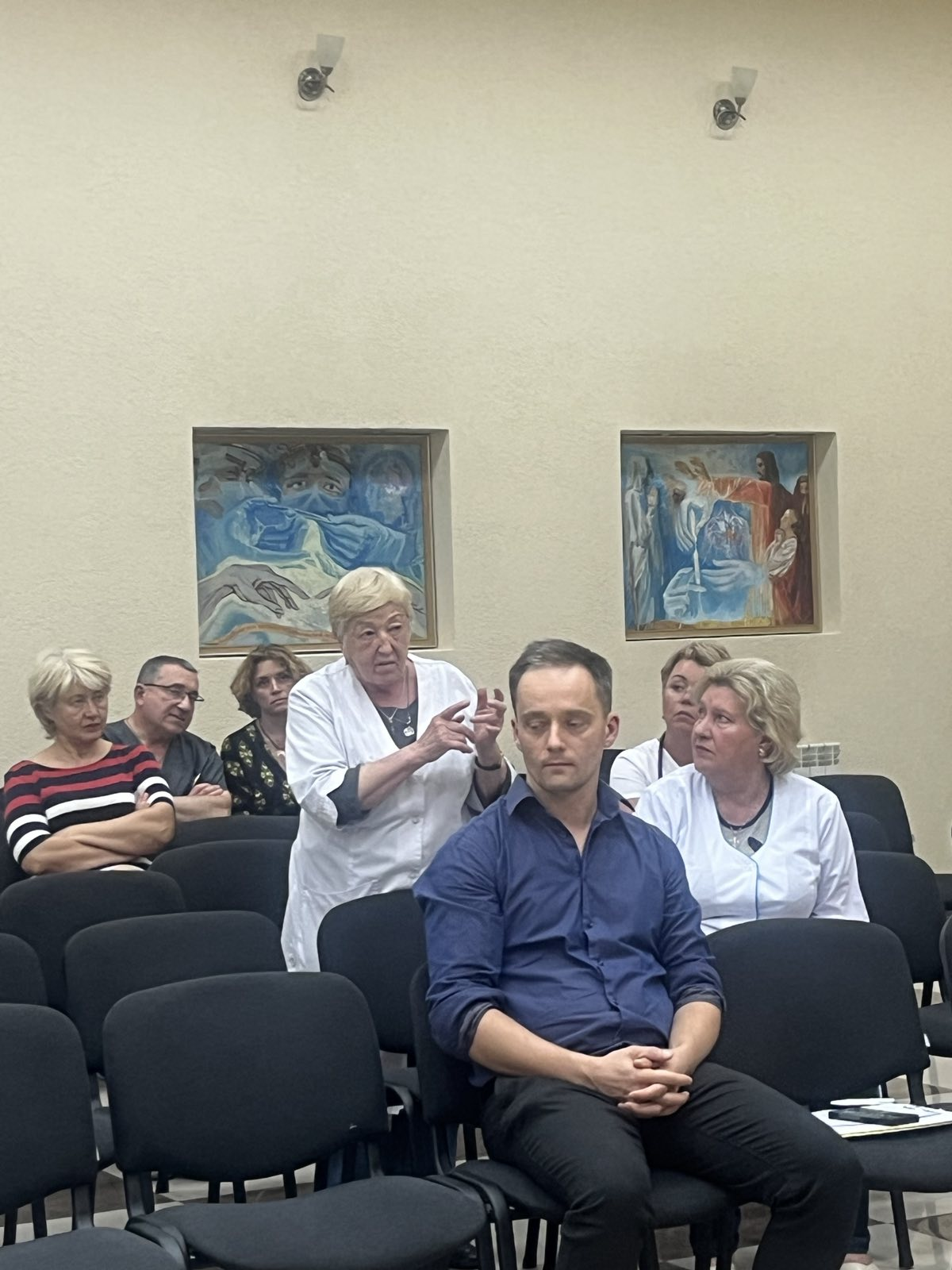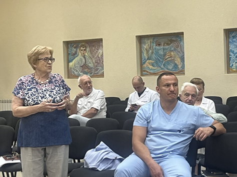 Першим питанням був розгляд проєктів нових науково-дослідних робіт на 2024–2026 рр. Доповідачами були керівники науково-клінічних підрозділів, відповідальні виконавці наукових тематик: канд. мед. наук Безносенко А.П. (доповідав д.  мед. н. Бурлака А. А.), проф., член-кор. Стаховський Е.О., проф. Головко Т.С. (доповідав д. мед. н. Войленко О. А.), проф. Крячок І.А., проф. Смоланка І.І. (доповідав д. мед. н. Ляшенко А. О.), проф. Свінціцький В. С. (доповідала к. мед.н. Дерменжи Т. В.), проф. Іванкова В.С.