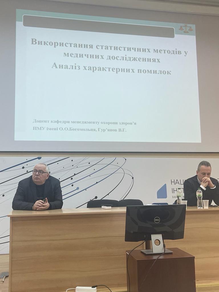 В рамках обміну досвідом, та наукової співпраці на засідання апаратної наради Національного інституту раку 02.02.2024 року з лекцію на тему: «Використання статистичних методів у медичних дослідженнях. Аналіз характерних помилок» презентував Гур’янов Віталій Григорович, доцент кафедри менеджменту охорони здоров’я Національного медичного університету імені О. О. Богомольця.