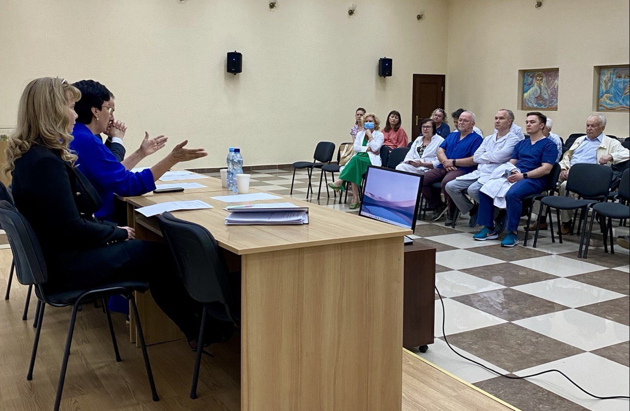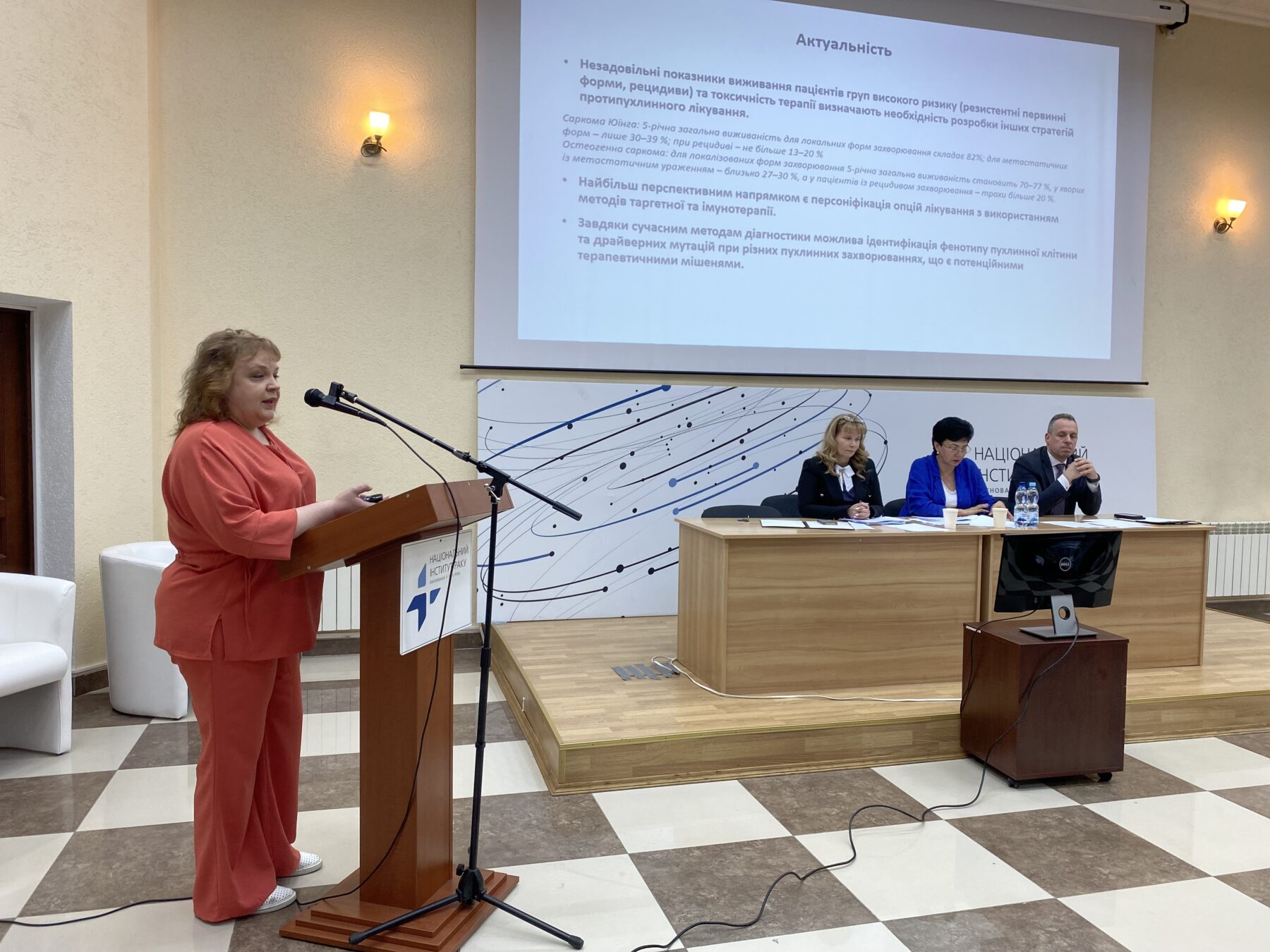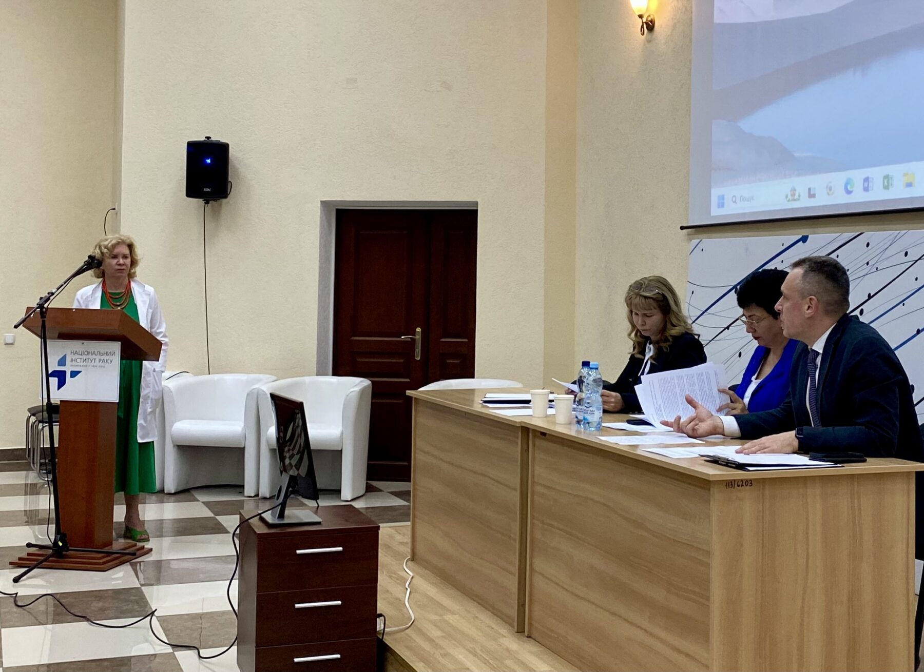 За першим питанням порядку денного заступник генерального директора з наукової роботи Андрій Лукашенко оголосив розгляд проєкт нових тем науково-дослідних робіт, з урахуванням викликів воєнного стану. Доповідачами проєкт НДР були керівники науково-клінічних підрозділів, відповідальні виконавці наукових тематик: професор Ірина Крячок, професор Наталія Храновська (комплексна НДР з залученням керівників науково-клінічних відділень – відповідальних виконавців: к.мед.н. Григорія Климнюка та к.мед.н. Юрія Михайловича), професор Оксана Солодяннікова, відповідальний виконавець к.мед.н. Тетяна Дерменжи (керівник професор Валентин Свінціцький).
