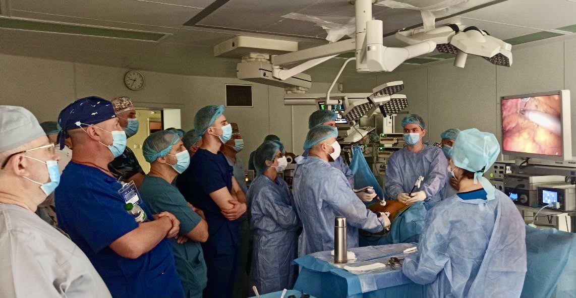 28 червня у Відділенні онкоколопроктологіі ДНП «НІР» відбулися заплановані секції «Живої хірургії» на яких онкохірурги відділення разом з американськими спеціалістами провели майстер-класи з колоректальної та печінкової хірургії для українських колег онкохірургів. Були проведені три лапароскопічні втручання, а саме: