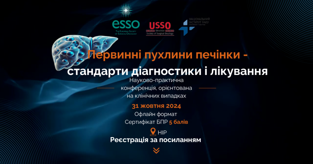 Запрошуємо долучитися до Науково-практичної конференції із міжнародною участю «Первинні пухлини печінки: стандарти діагностики та лікування», що відбудеться 31 жовтня 2024 року в Національному інституті раку.