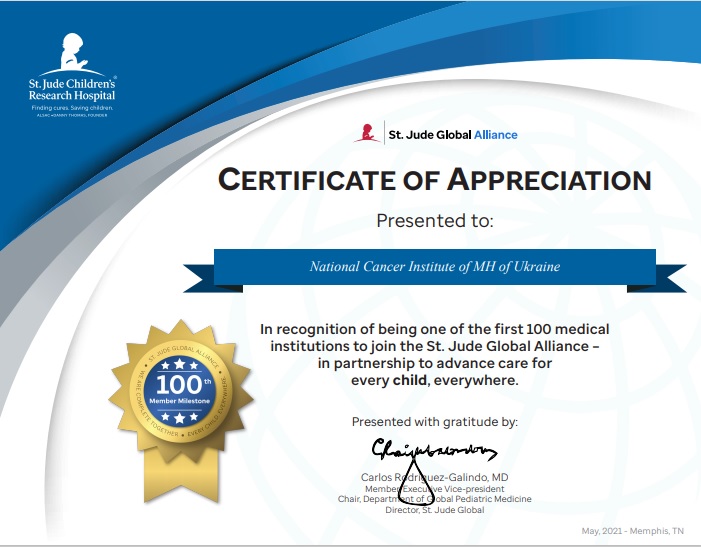 Від грудня 2018 року відділення дитячої онкології Національного інституту раку є одним із перших установ, що увійшли до складу Альянсу.