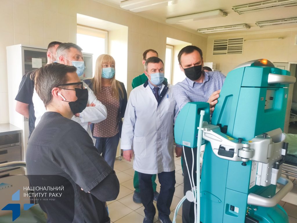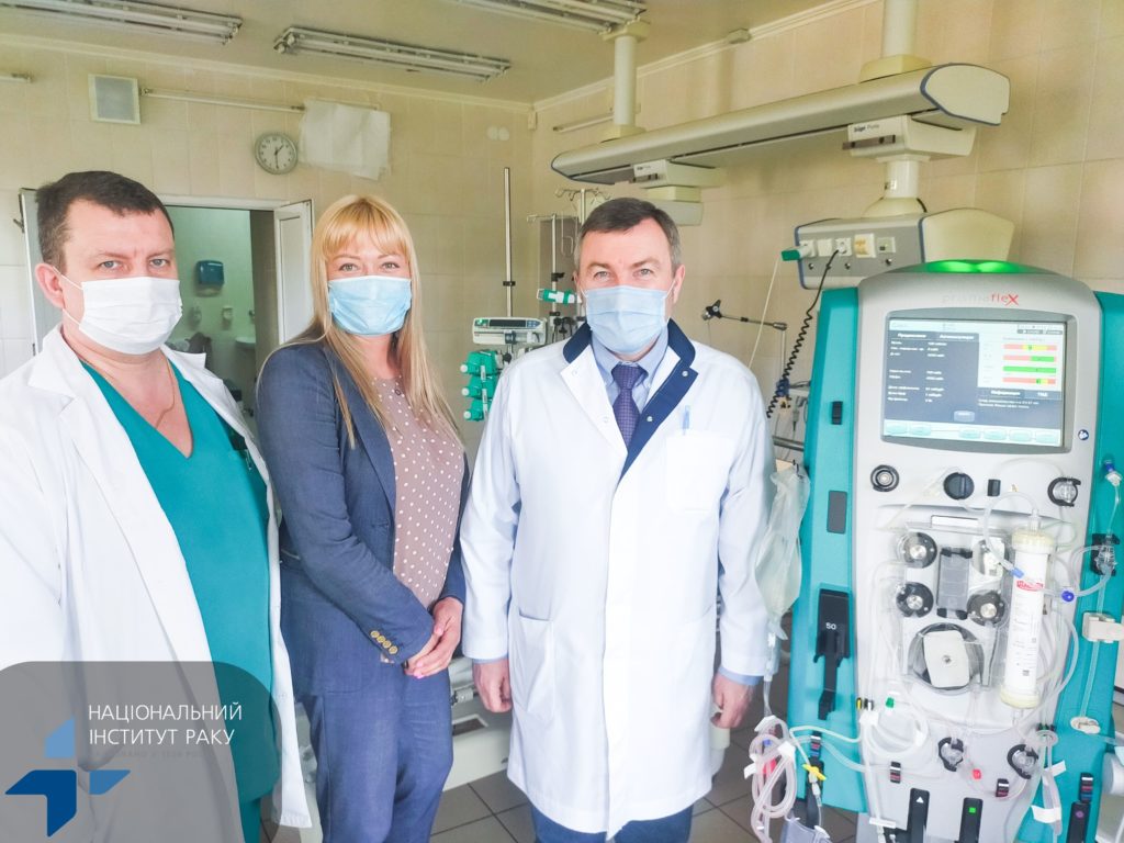 Компанія «Бакстер», головний офіс якої знаходиться в США, є одним зі світових лідерів у виробництві медичної продукції та наданні послуг у сфері охорони здоров’я. Компанія була заснована в 1930 р. і першою почала виробляти продукцію для забору та переливання крові, а також стерильні розчини для внутрішньовенного введення в пластикових контейнерах. У 50-ті роки ХХ ст. компанія перша освоїла промисловий випуск апарату «штучна нирка» і витратних матеріалів до нього.Сьогодні до НІР привезли й встановили нове інноваційне обладнання системи PRISMAFLEX. Завдяки якому надання послуг інтенсивної терапії в Інституті виходить на новий рівень.Роботу системи інспектував в.о. директора НІР Андрій Федорович Шипко.