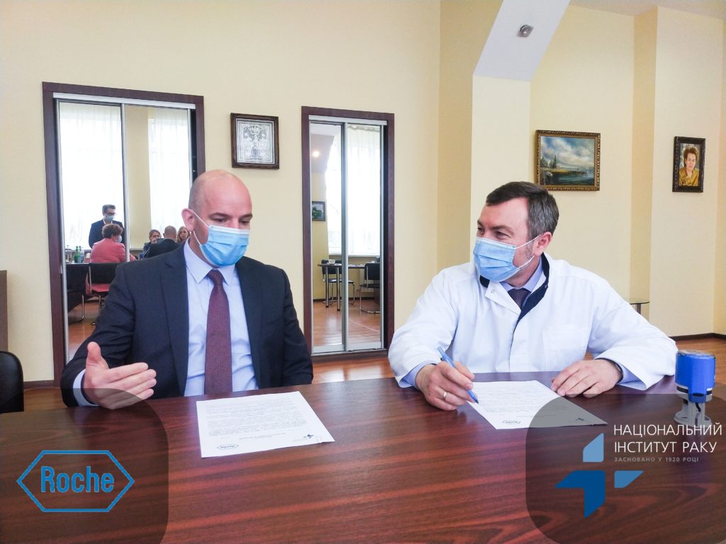 Представники фармацевтичної компанії «Рош Україна» та Національного інституту раку (НІР) підписали Меморандум про взаєморозуміння та співробітництво для координації зусилля у поліпшенні профілактики, діагностики та лікуванні онкологічних захворювань. Головна мета меморандуму – сприяти розвитку охорони здоров’я України у сфері онкології.