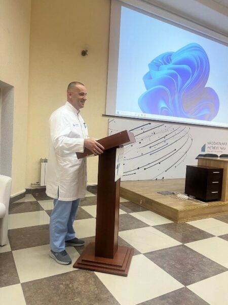 З вітальною промовою виступила учений секретар, керівник інтернів Наталія Банковська та доповіла про організацію підготовки лікарів-інтернів на базі стажування ДНП «НІР», ознайомила присутніх у загальних рисах з вимогами до підготовки інтернів згідно з навчальним планом і програмою та побажала успішно подолати труднощі, з якими неодмінно можуть стикатися лікарі-інтерни.