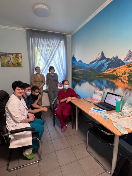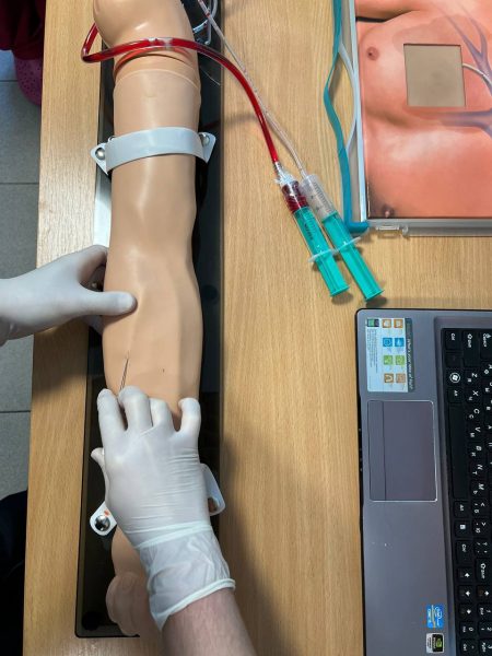 У відділенні дитячої онкології відбувся тренінг з повторення алгоритму постановки периферичного катетера на манекені.