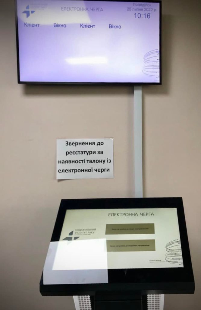 В рамках проєкту в поліклініці Національного інституту раку працює бокс електронної черги.