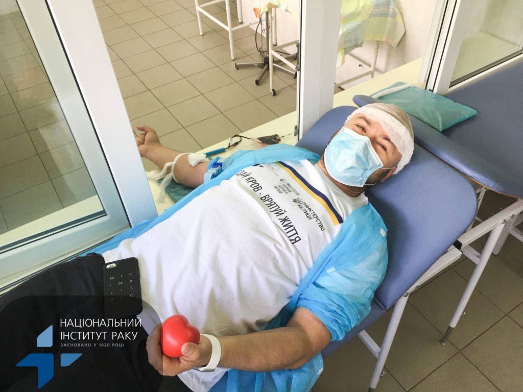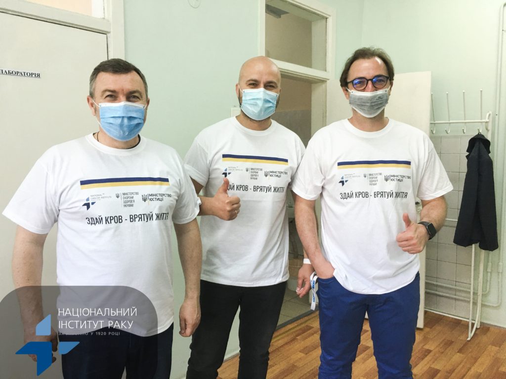 Міністр МОЗ України Віктор Ляшко, в.о. директора НІР Андрій Шипко та головний лікар НІР Андрій Безносенко завітали до відділення трансфузіології, щоб приєднатись до акції “Здай кров – врятуй життя” та у такий спосіб допомогли нашим пацієнтам боротись з онкологічними захворюваннями.